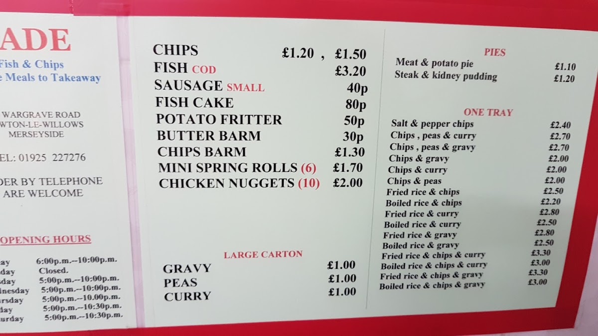 The menu at Jade offers a straightforward and comforting selection perfect for casual dining or a relaxed takeaway evening. Whether you’re in the mood for classic fish and chips or a variety of Chinese dishes, this menu balances familiar favourites with a few thoughtful touches.